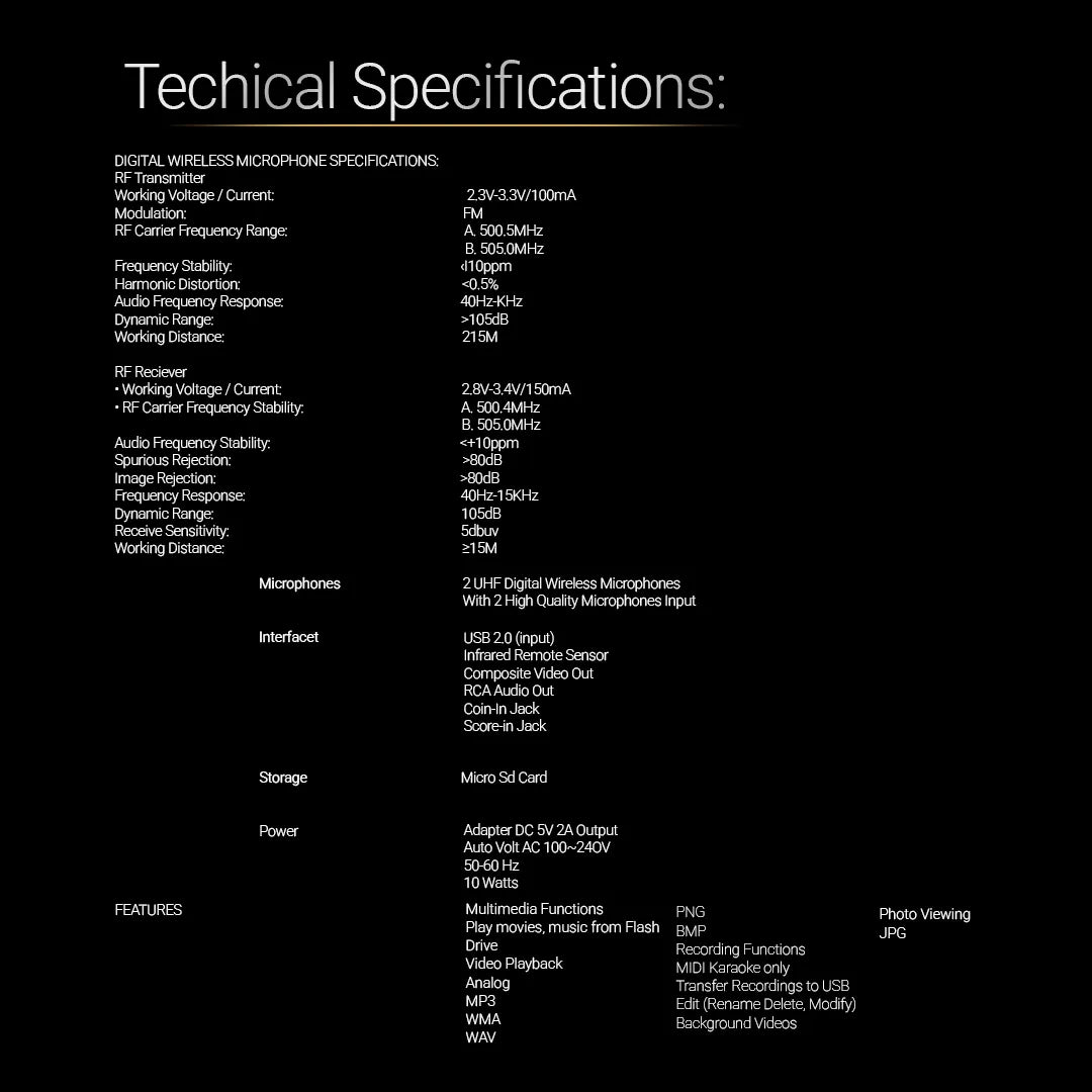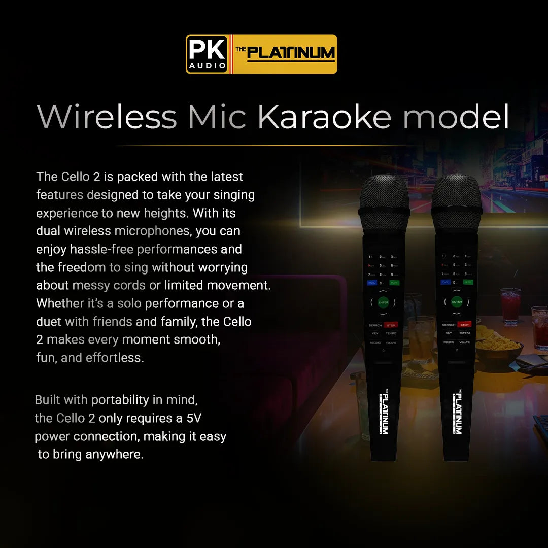 CELLO 2 UHF Wireless Microphone Karaoke Player - International Shipping