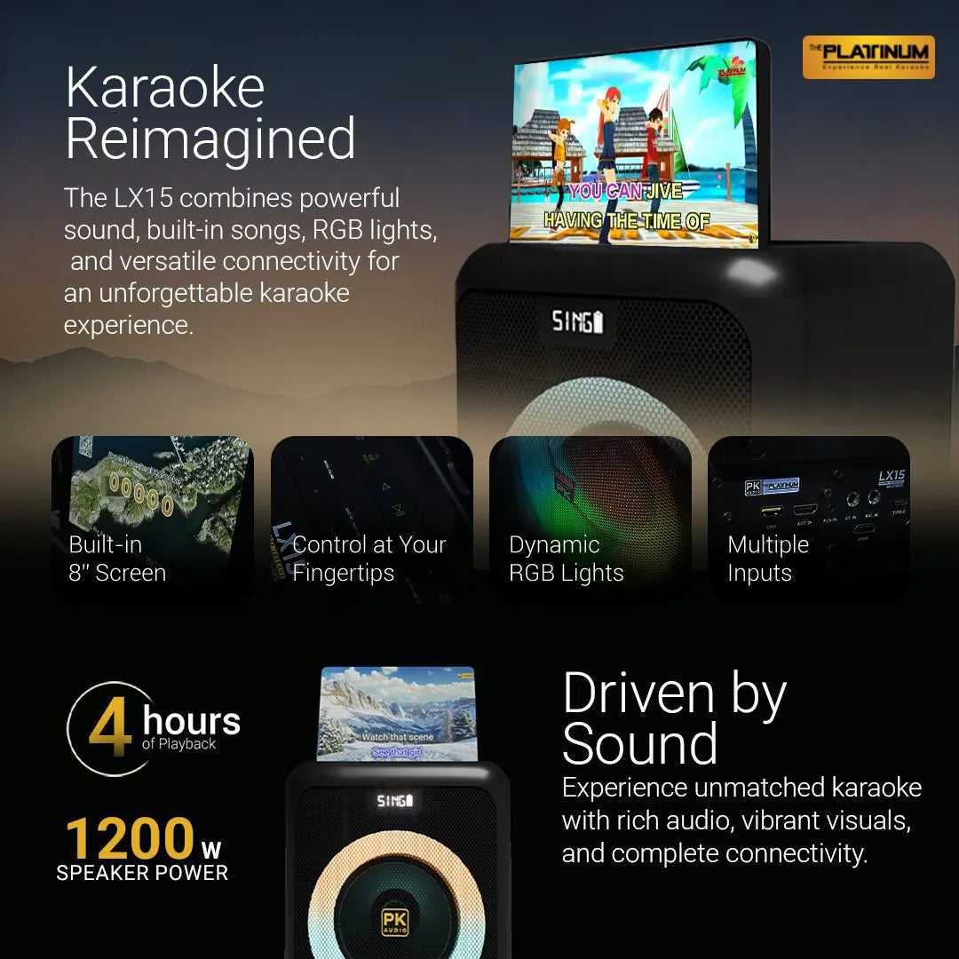 LX15 Karaoke Speaker with UHF Wireless Microphones 6.5" Woofer class LCD Karaoke Speaker
