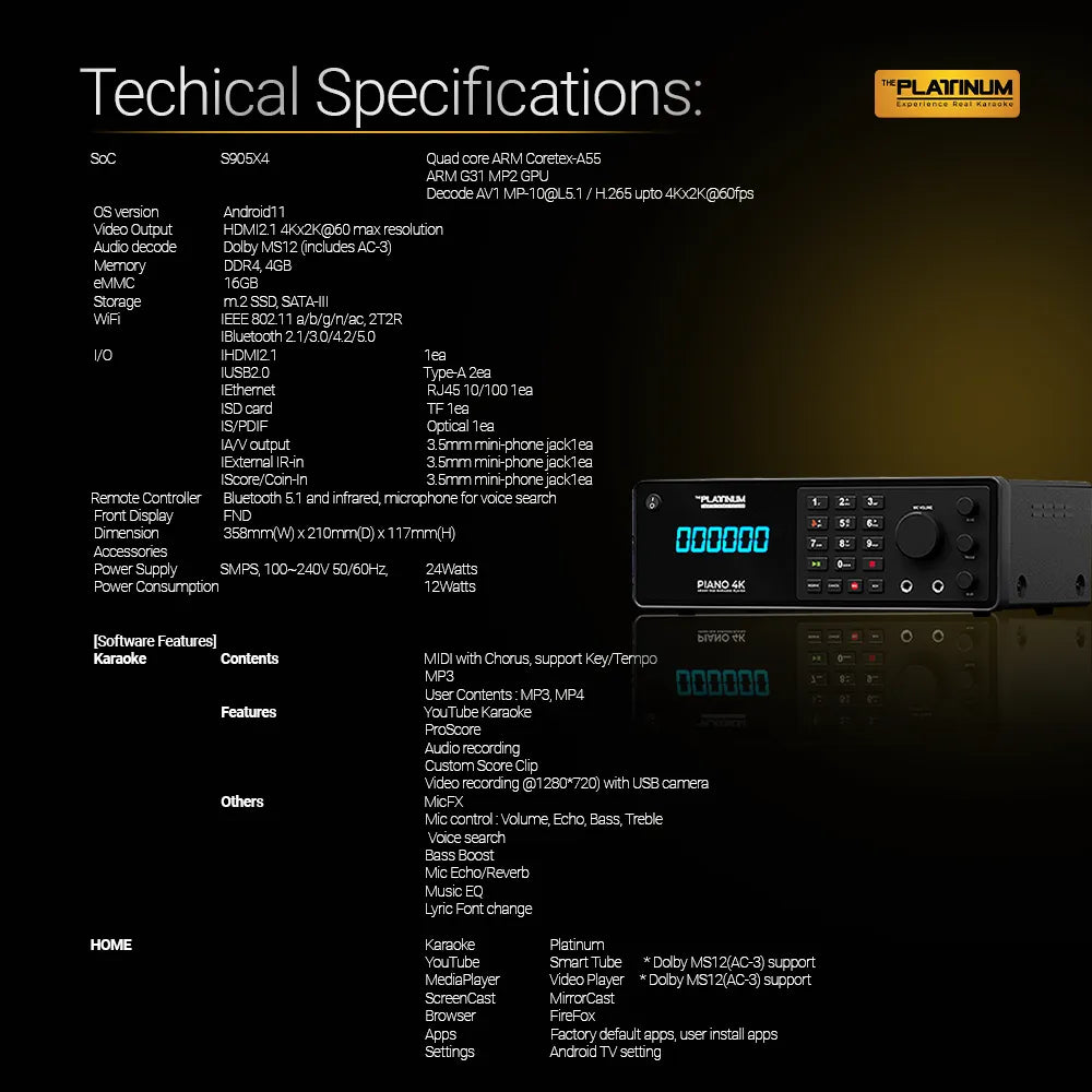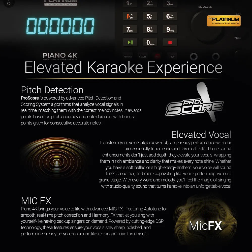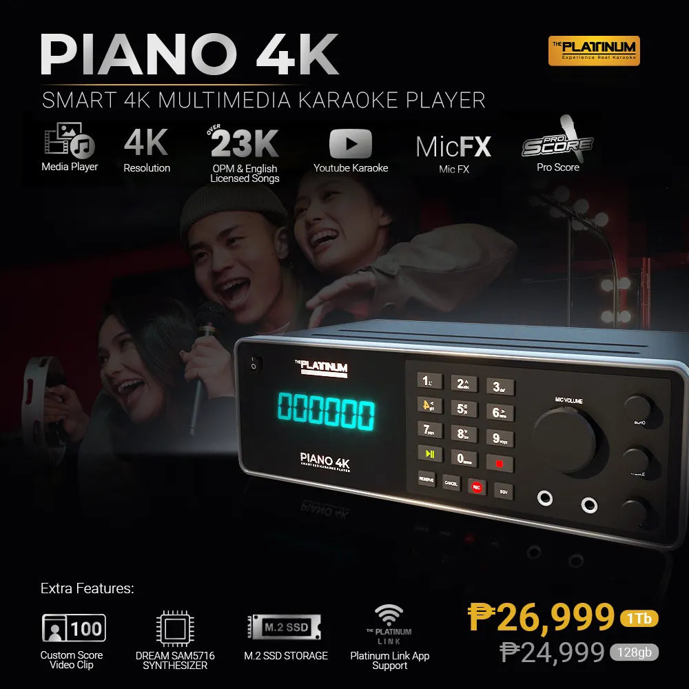 PIANO 4K 128gb High-End Home Karaoke System with Wired Microphone